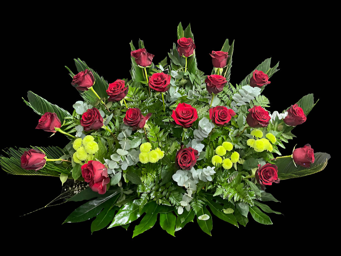 El Centro Rosas es un centro funerario de diseño único. Está hecho de hermosas rosas de colores para elegir. Su mediano tamaño lo hace ideal para mostrar gratitud y recordar a los seres queridos. Una manera tierna y sincera de honrar la vida. Producto para recogida en tienda o entrega en tanatorio de la comarca de Valdeorras (ponte en contacto con nosotros en el 604 05 44 71)