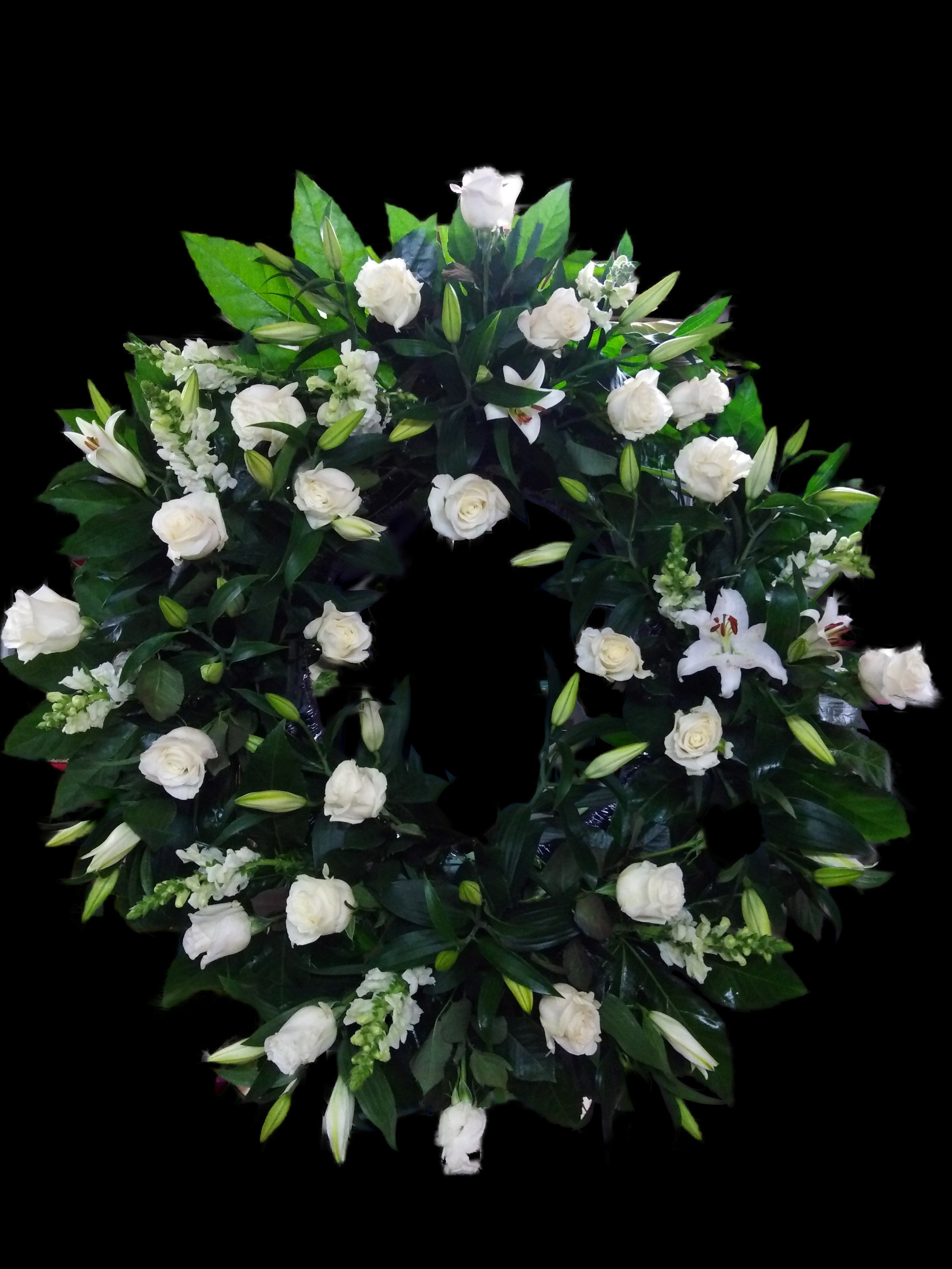 La corona 150, una discreta pero elegante corona circular que puede añadir condolencias a un momento especial. Diseñada con buen gusto, esta corona es una manera perfecta de honrar la vida de un ser querido. Producto para recogida en tienda o entrega en tanatorio de la comarca de Valdeorras (ponte en contacto con nosotros en el 604 05 44 71)