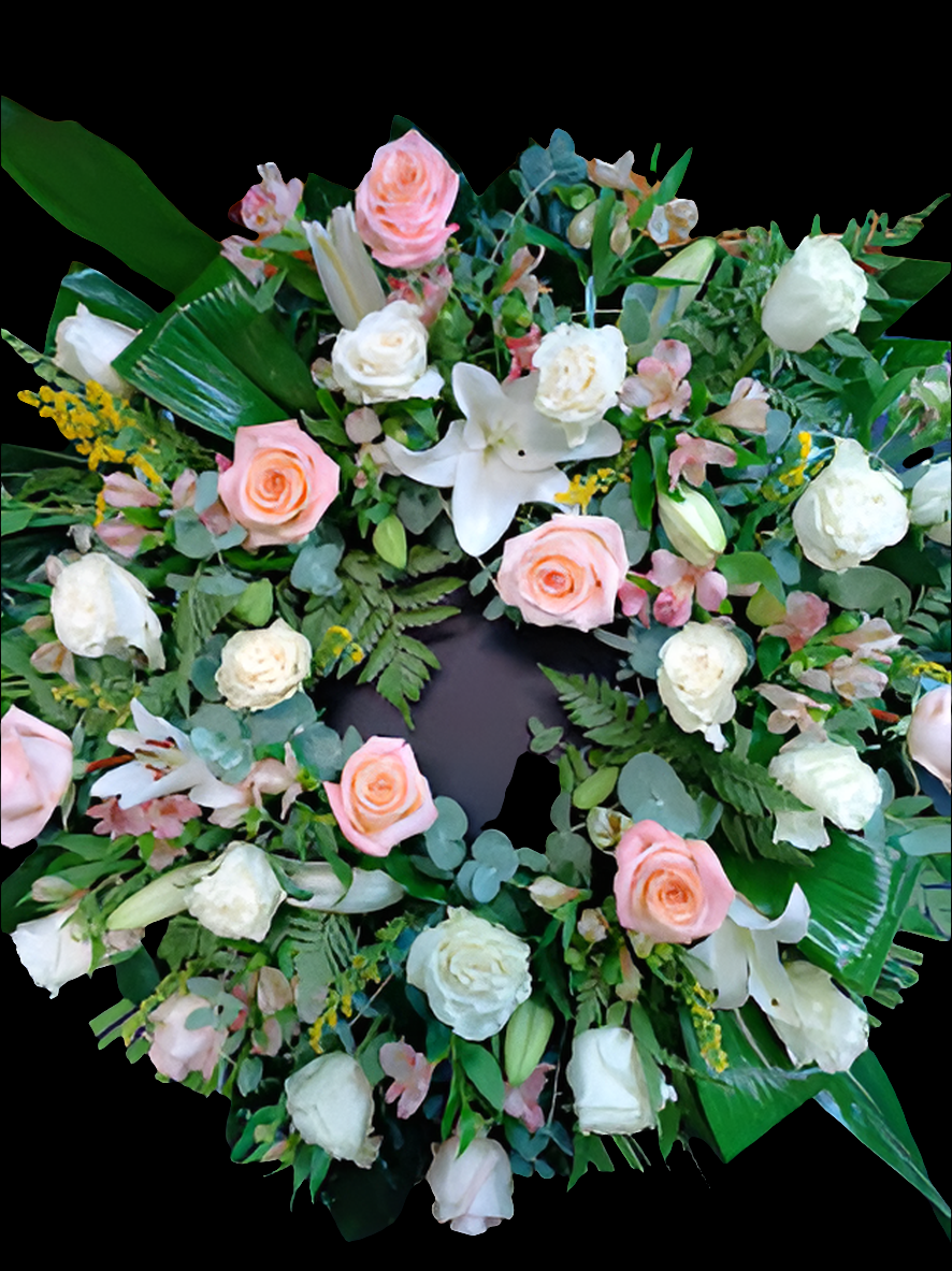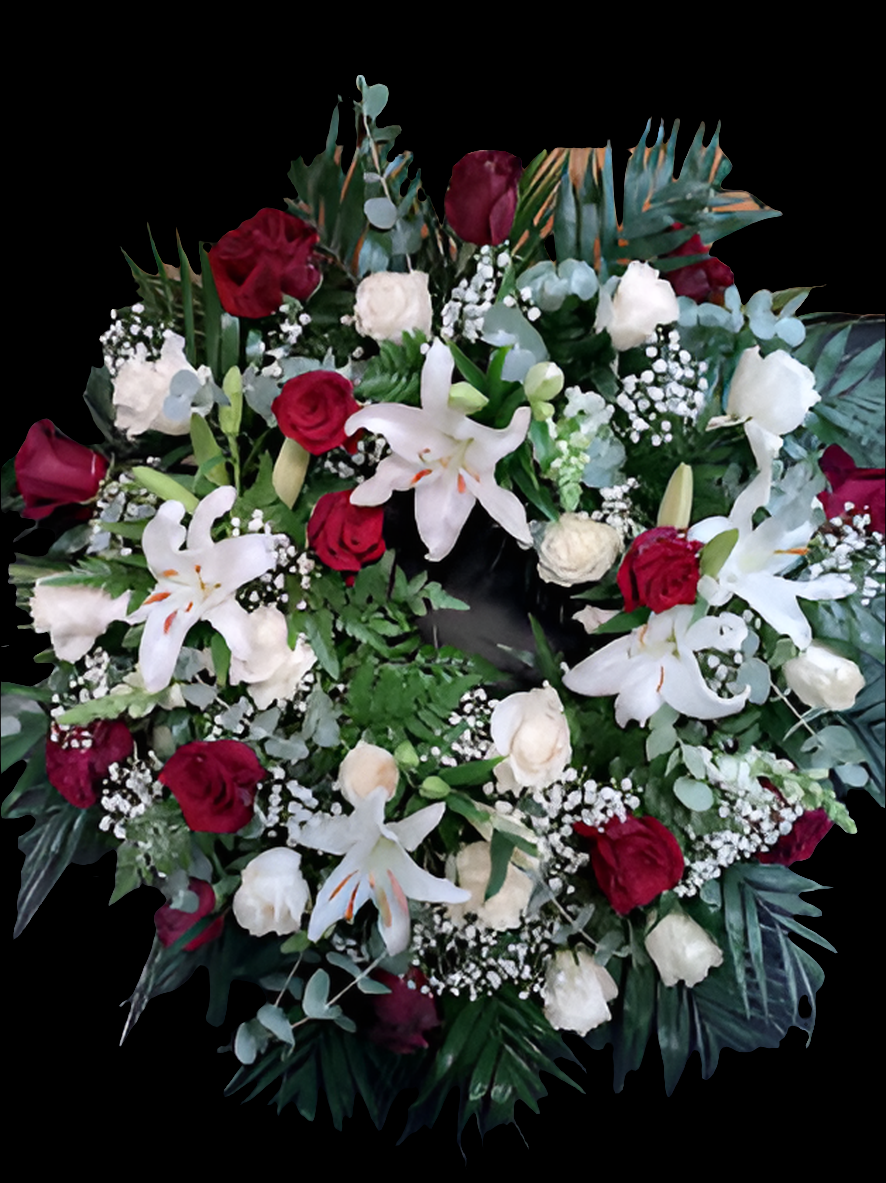 La Corona Pequeña ofrece una mezcla perfecta de rosas, lilium y otras flores de adorable diseño. De 90 cm de diámetro, esta corona funeraria es un magnífico homenaje para un ser querido y un recordatorio de su legado. La combinación de flores y colores crea una visual hermosa que expresa profundos sentimientos. Sólo para servir en tanatorios de la Comarca de Valdeorras. Ponerse en contacto en el 604054471 de nuestra tienda física para concretar entrega y pago.
