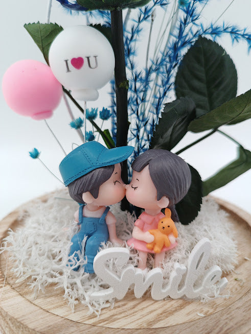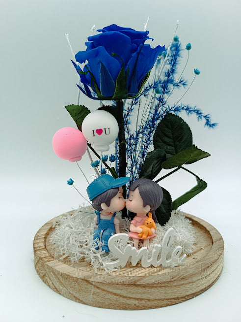 Cúpula con rosa preservada y parejita de enamorados. Saca una sonrisa y sorprende a quién TÚ más quieras. Puedes escoger el color de la rosa que prefieras e indicárnoslo en el apartado de observaciones al finalizar el proceso de compra. Plazo de elaboración: 48/72 h