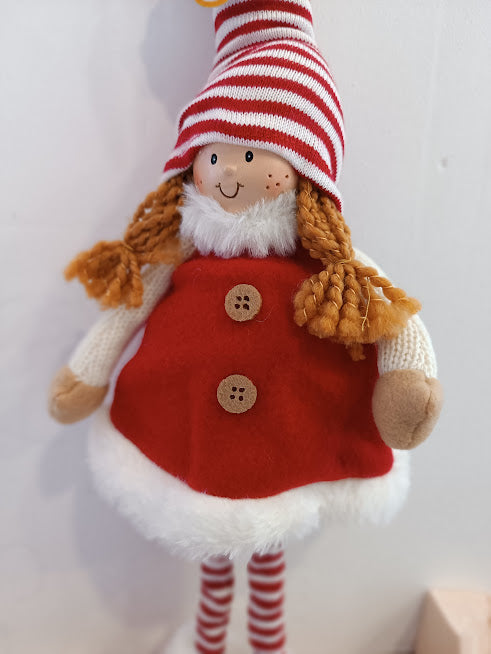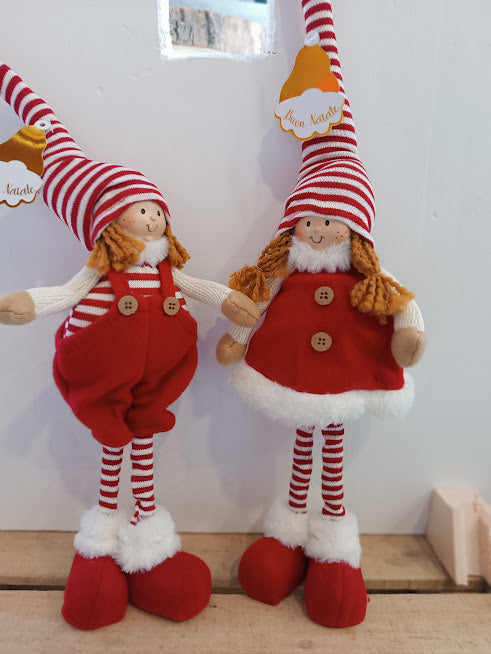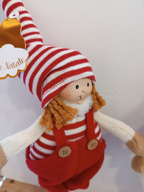 Duende decorativo en tela y piel ecológica para apoyar.  Medidas: cm 11x7x53 H (con gorro extendido)
