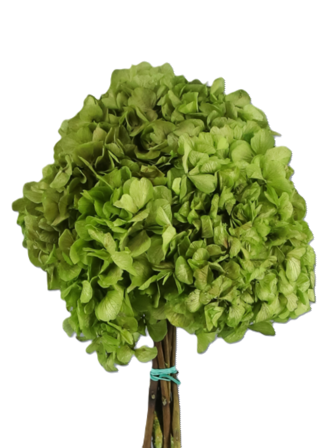 Hortensia preservada de color verde Peso del pomo: 10 g (varios tallos) Diámetro del pomo: 18/20 cm Tiempo de preparación y envío: 48/72 h laborables