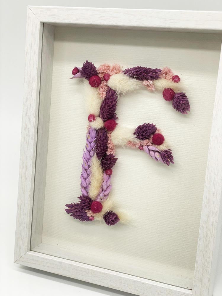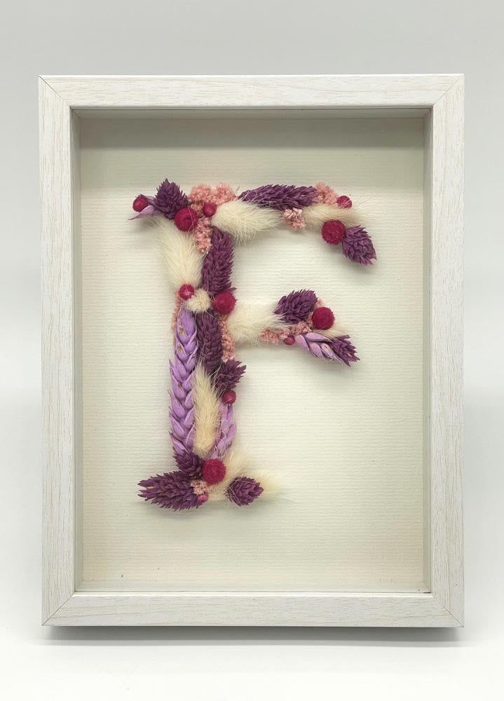 Letra elaborada con flor preservada y seca. Presentada en marco de madera. Personalizable con el nombre. Indícanos en observaciones que letra te gustaría, así cómo el tono de la misma (rosado, lilas, naranjas, azulado, verdes o rojos), así cómo si quieres incluir el nombre correspondiente a la inicial. Plazo de elaboración: 48/72 h