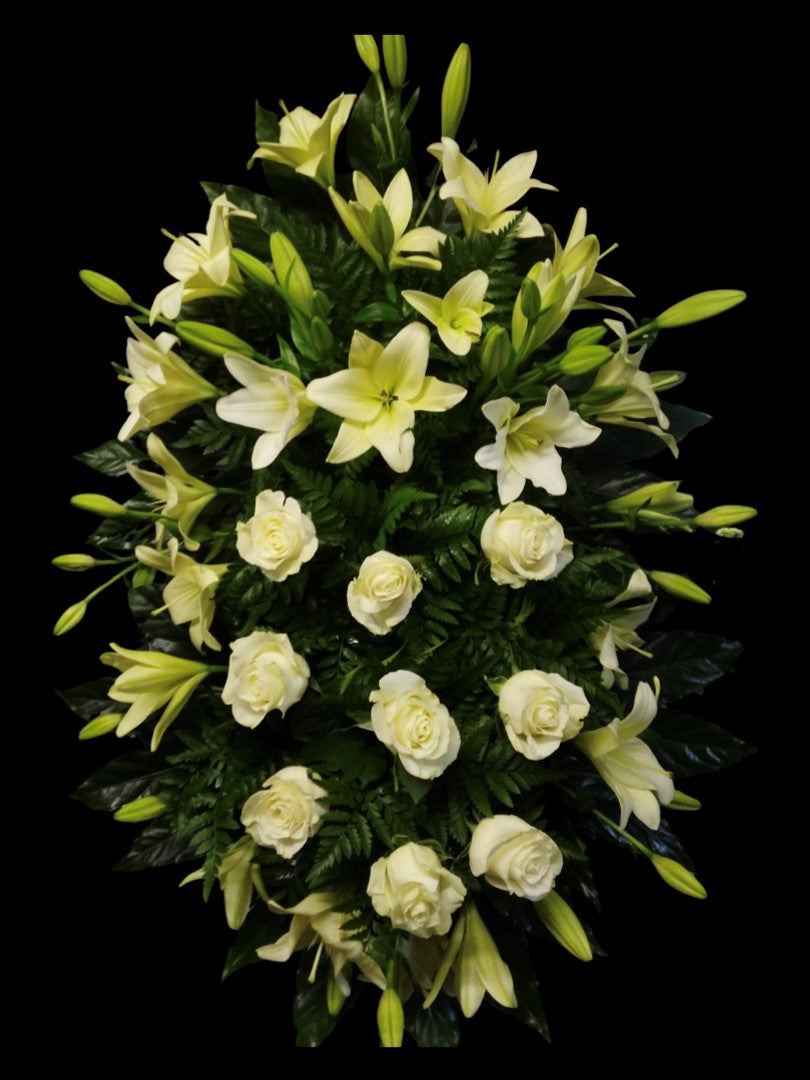 Esta palma funeraria de lillium y rosa, con una altura de 110 cm, es la mejor opción para ofrecer homenajes a un ser querido. Proporciona tranquilidad a su espacio con un diseño contemporáneo y natural. Este trabajo es ideal para funerarias, cementerios y otros lugares de descanso. SÓLO PARA RECOGIDA EN TIENDA O SERVICIO EN TANATORIOS DE LA ZONA.