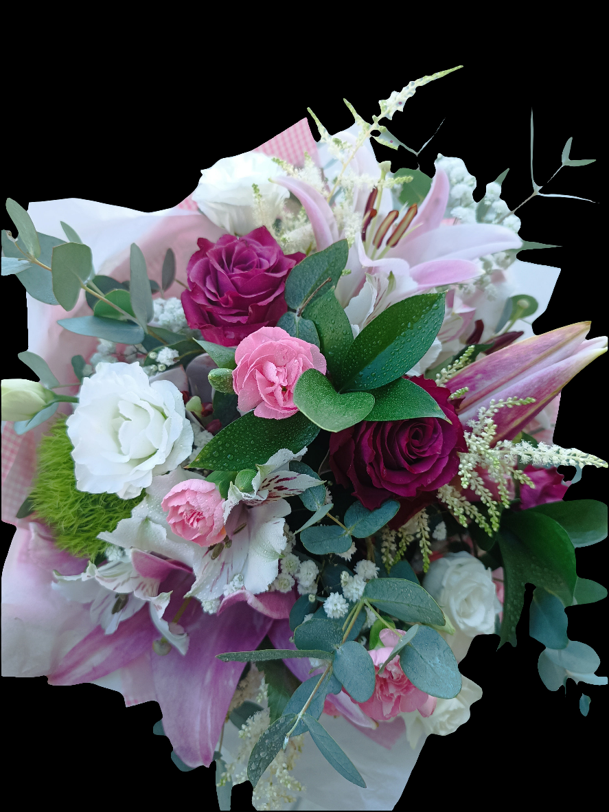 No es tarea fácil nombrar los ramos; buscar un nombre que describa lo que el ramo significa. En este caso, nos decantamos por Madre porque el arreglo es una SEÑORA composición con flor elegante e importante, imponente... cómo muchas madres: pilares de la familia, que con su presencia lo llenan todo. Y esa inmensidad es la que queremos expresar con este ramo: liliums, rosas, lisianthus, alstroemeria y algún pequeño detalle silvestre que es nuestra seña de identidad. LOS RAMOS NO SE ENVÍAN POR AGENCIA