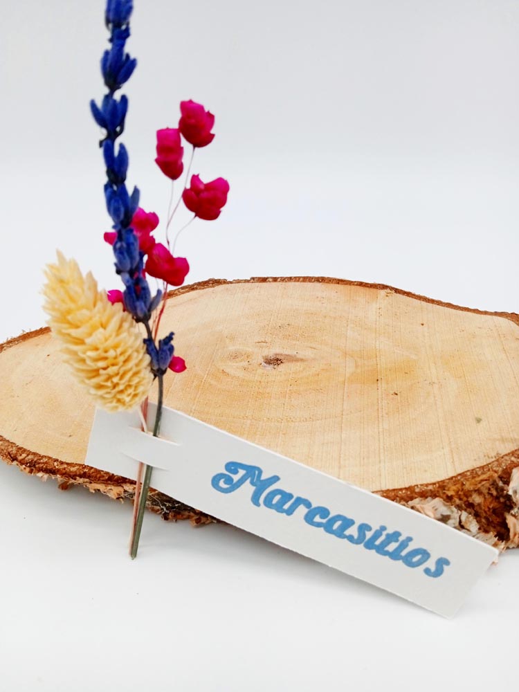 Tarjetín en cartulina dura con el nombre personalizado de tus invitados acompañados por un pequeño detalle floral acorde con los colores de tu ceremonia.