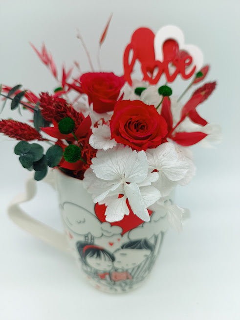 Con la Taza LOVE, disfruta de tus bebidas favoritas envueltas en un diseño encantador de flores preservadas . Agrega un toque de amor a tus días y sorprende a tu pareja con un regalo especial. Hecha con amor para ti y tu ser amado.