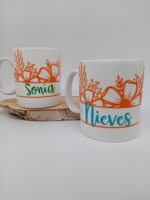 "La taza personalizada en vinilo es perfecta para tu bebida favorita. Con alta durabilidad y la posibilidad de un arreglo floral con paniculata de colores, será el complemento ideal para tu hogar. Personalizada con tu nombre. No ser apta para microondas.